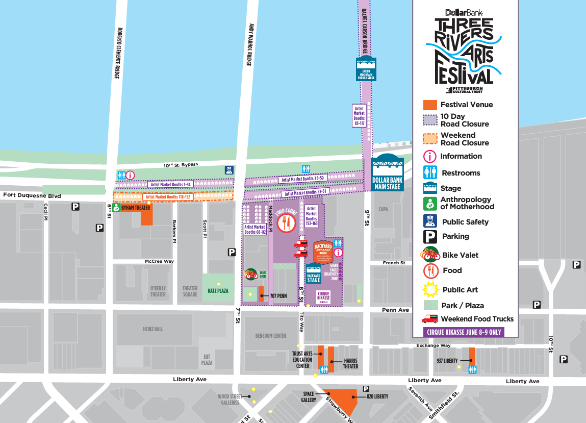 Pittsburgh Arts Festival Map What’s new at this year’s Three Rivers Arts Festival: Our performances have been funded by the National Endowment for the Arts, the City of Pittsburgh, the Heinz Endowments, the Pittsburgh Foundation, the Hillman Foundation, Opportunity Fund . The Pittsburgh Renaissance Festival is back for six themed weekends starting on Saturday.The festival, which starts on Aug. 24, will feature local artisans, classic shows and new entertainment. .